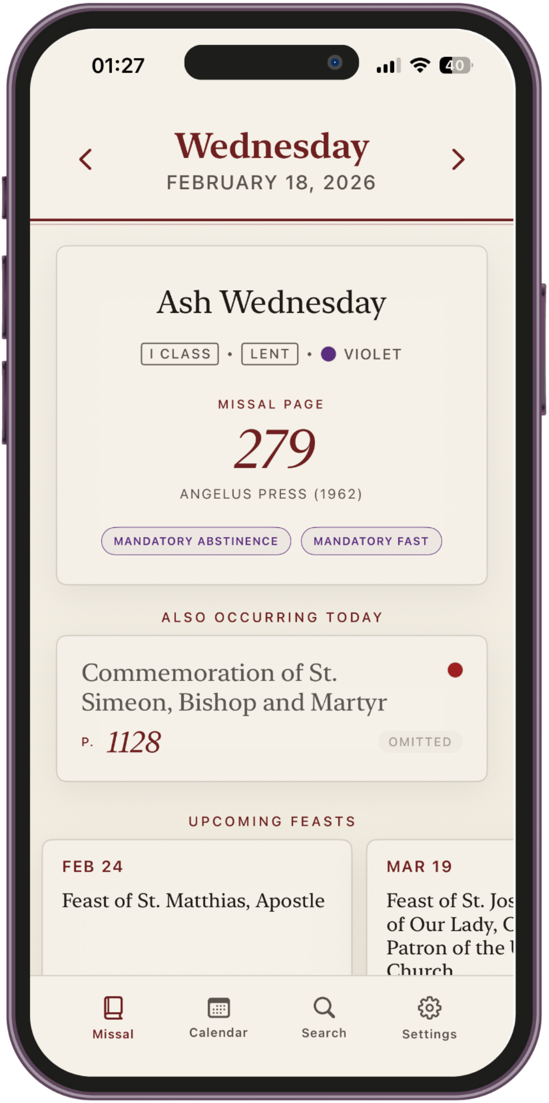 Built to make the traditional calendar easier to follow, the missal easier to navigate, and the day's prayers easier to keep close.
